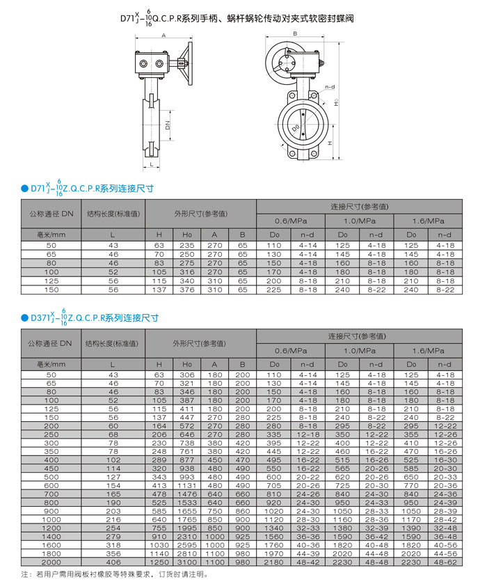 手柄、蜗杆蜗轮传动对夹式软密封蝶阀