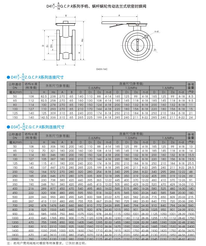 手柄、蜗杆蜗轮传动法兰式软密封蝶阀